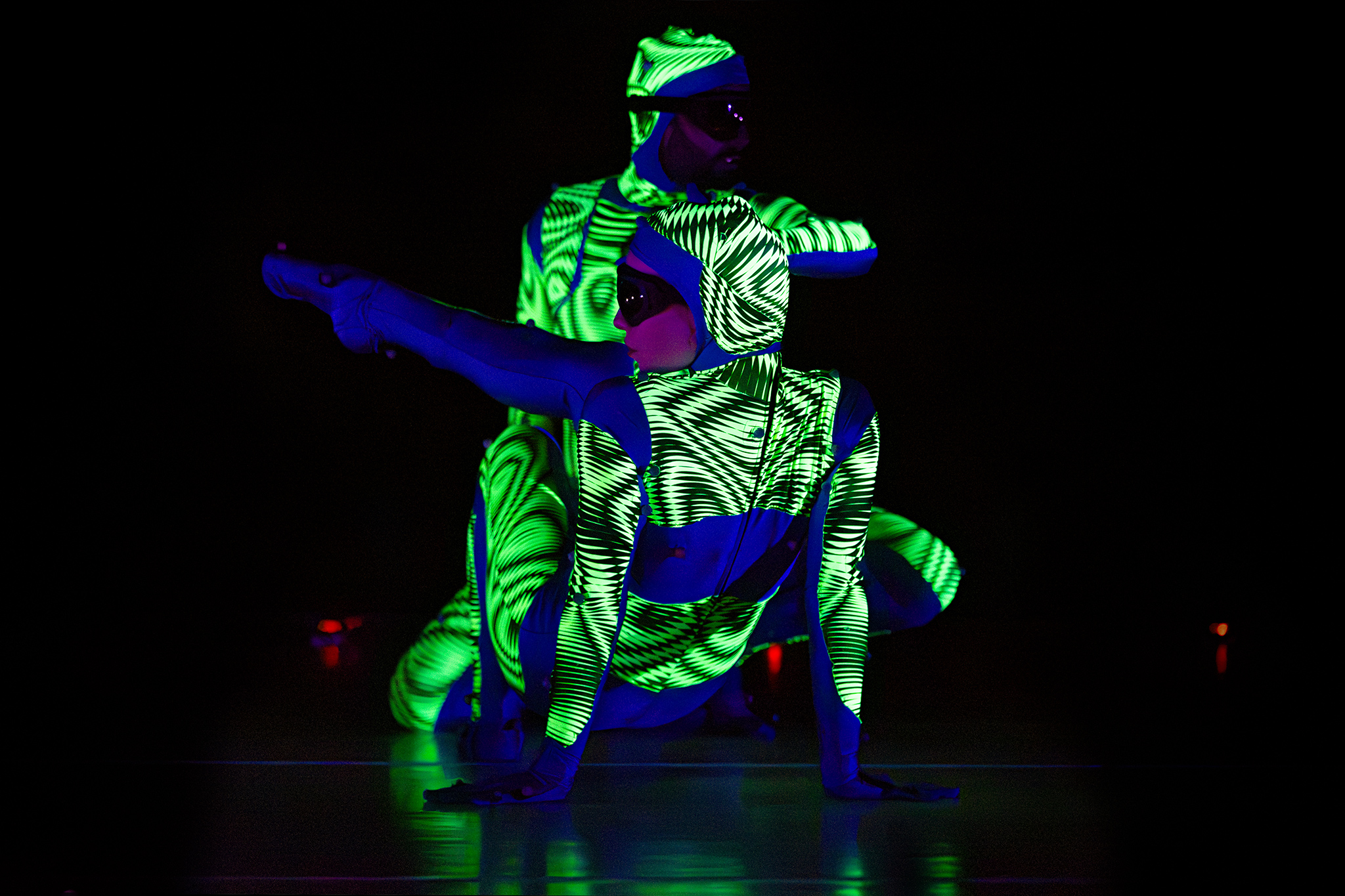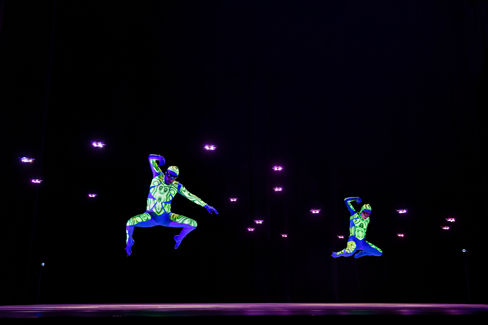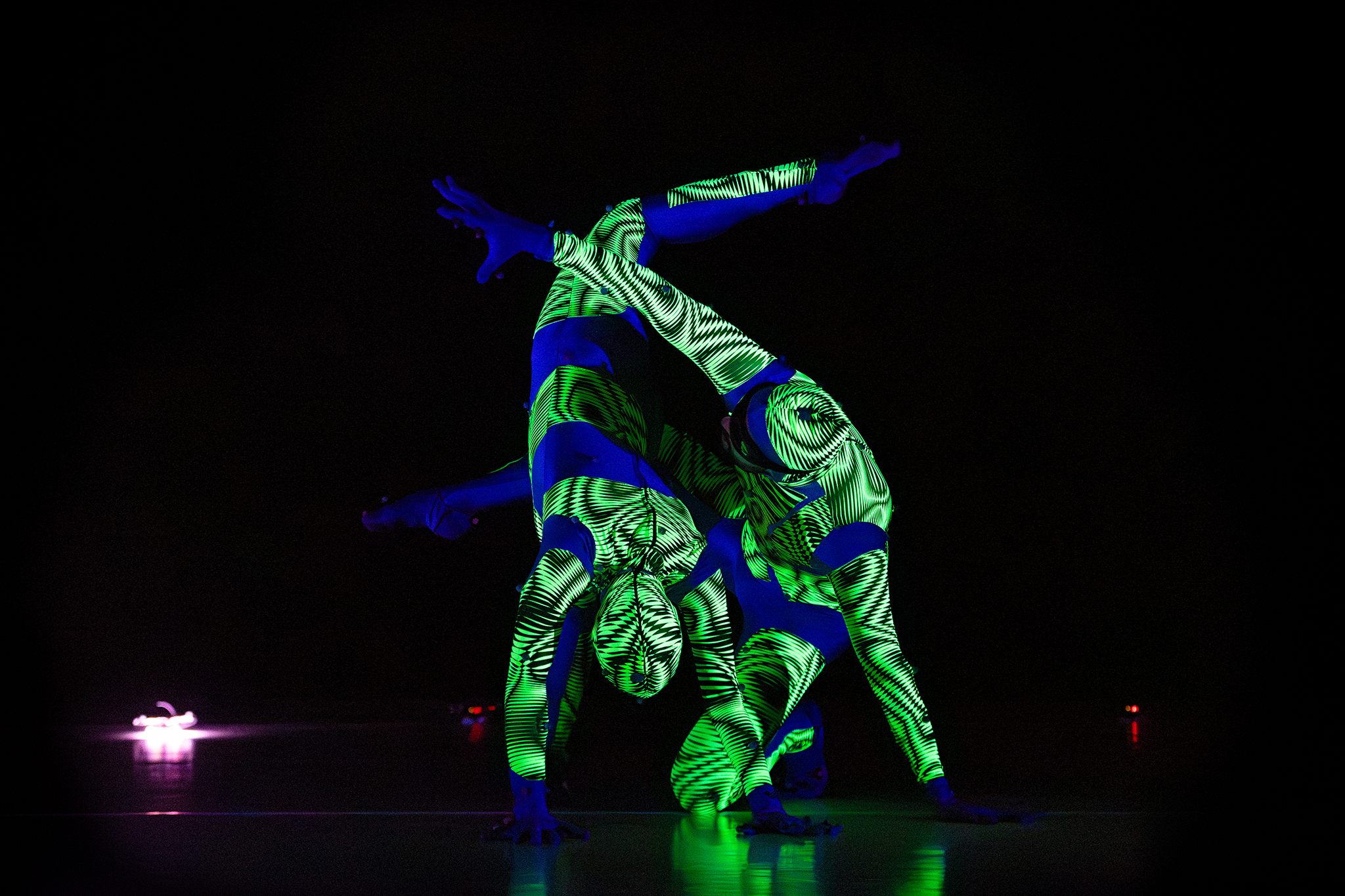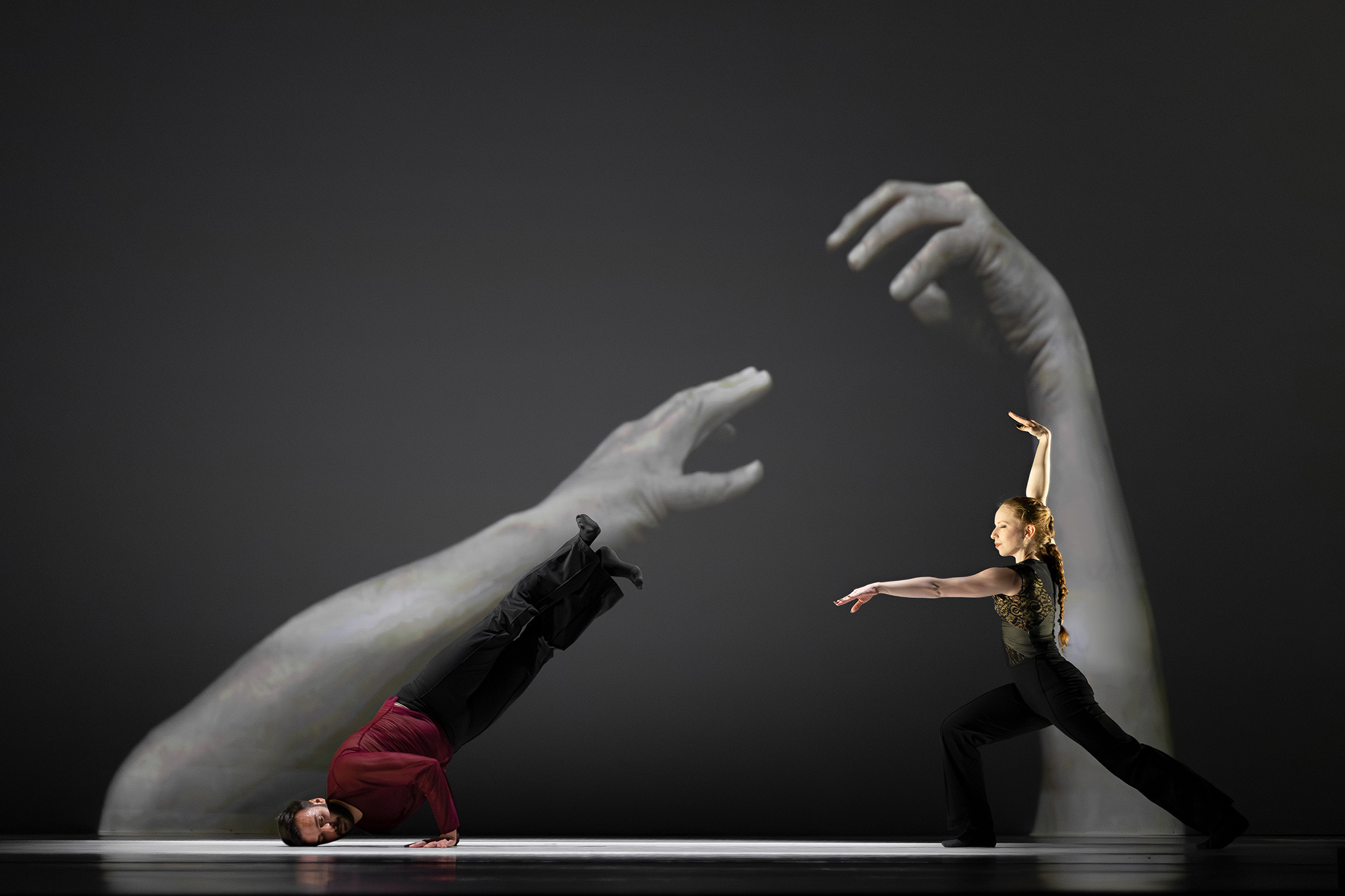 En in Flyland (2016) lijken dansers door de lucht te vallen, gevangen en voortgestuwd door hun eigen schaduwen. Licht en projectie worden hier een danspartner die de wetten van de zwaartekracht opheft en de grenzen van het lichaam vervaagt.