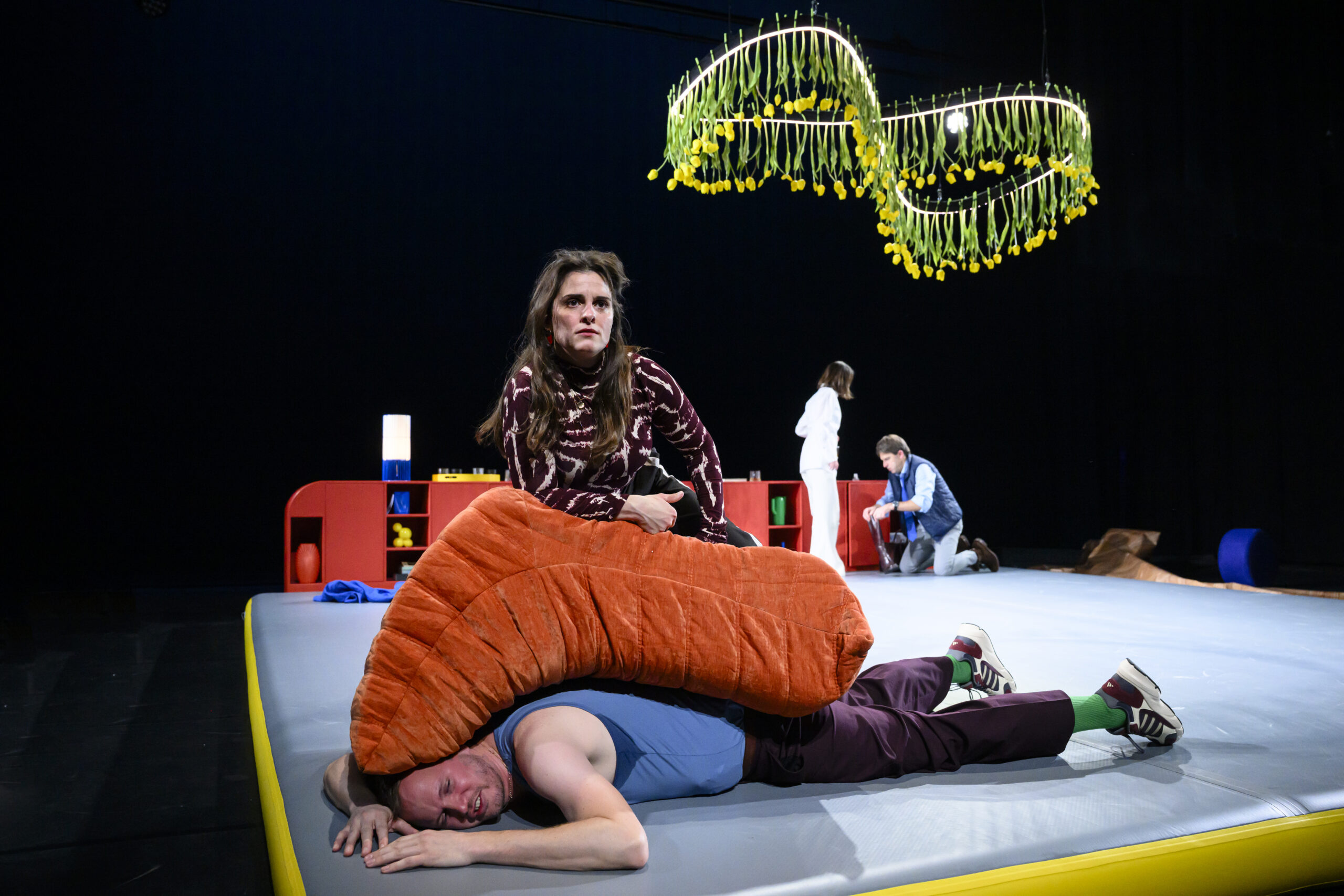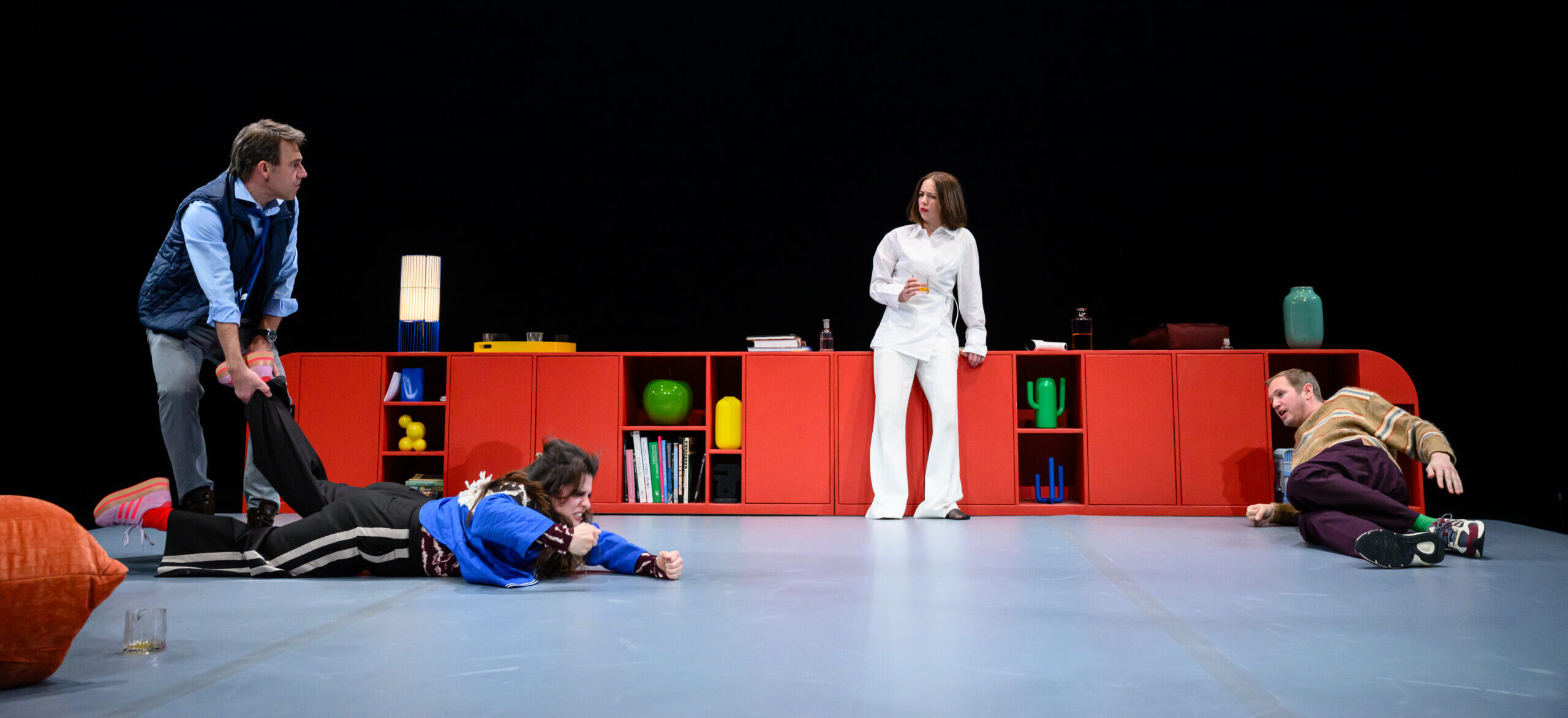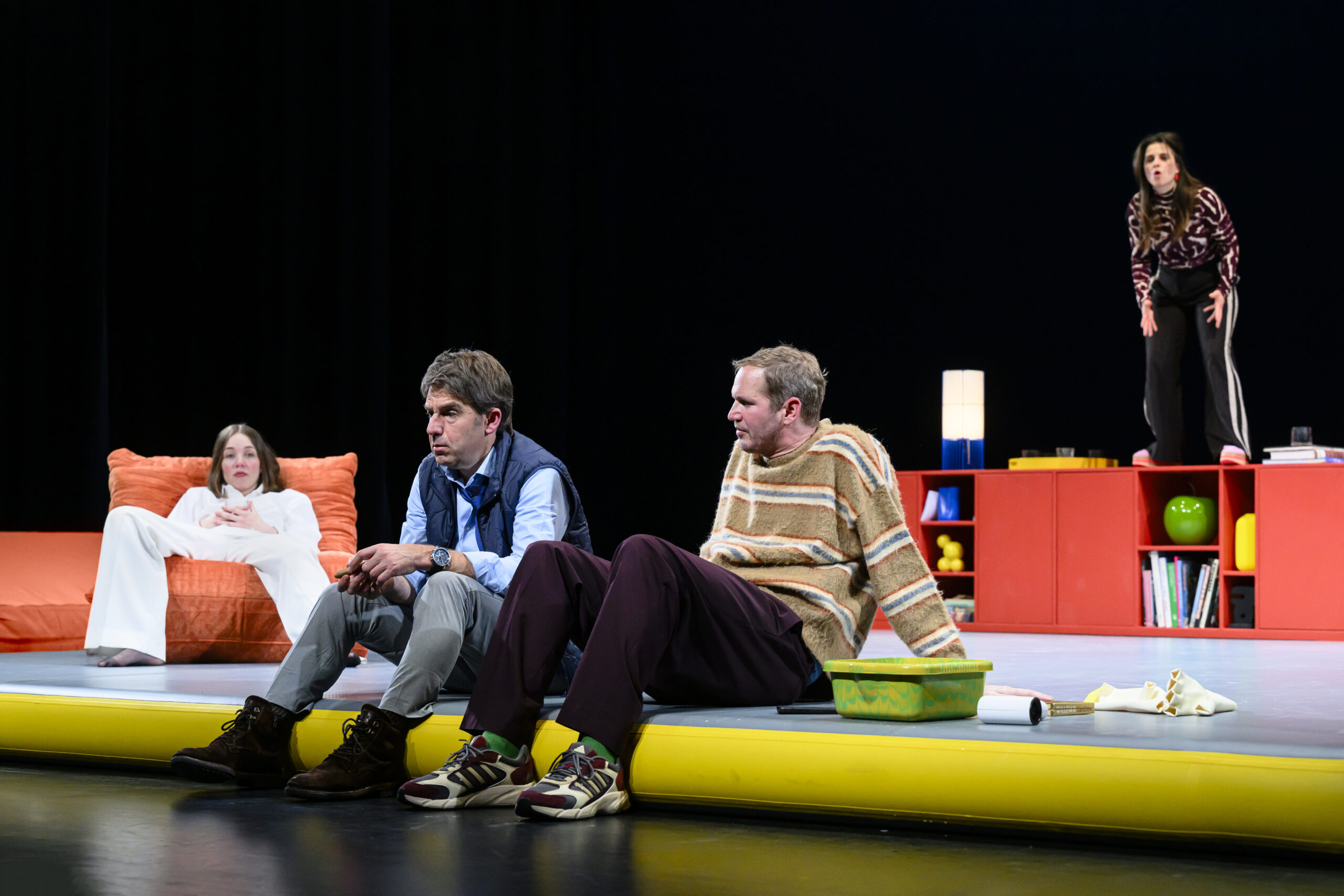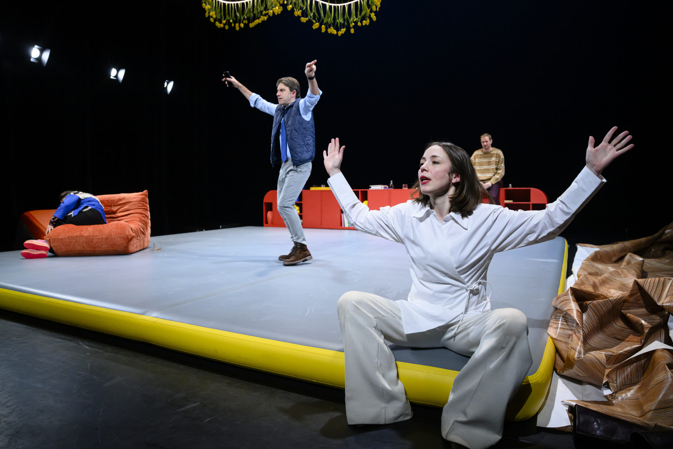 Cabaretiers Remko Vrijdag, Rosa da Silva, Johan Goossens en Yara Alink, sterren in hun feilloze en komische timing, schitteren in de wereldberoemde relatiekomedie God van de slachting.