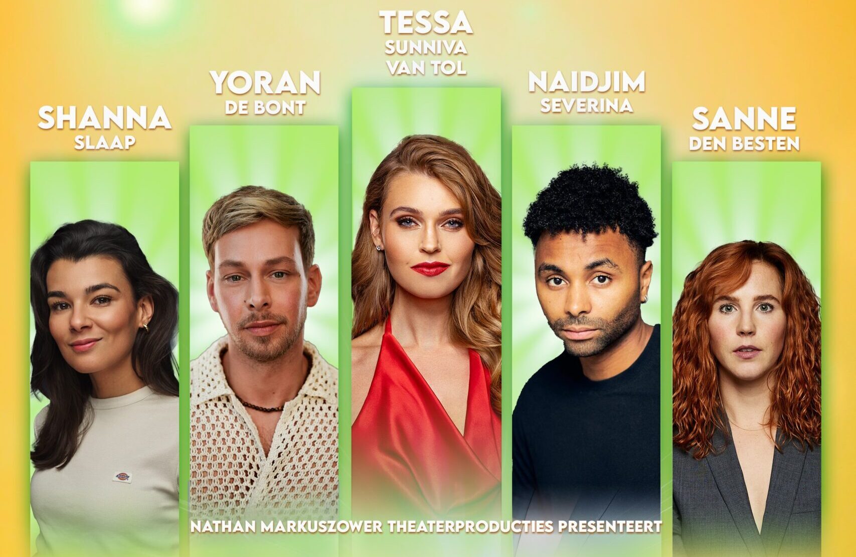 Line up: Tessa Sunniva (Moulin Rouge, Anastasia), Naidjim Severina (Frozen, Mamma Mia, Wicked), Sanne den Besten (Grease, Mamma Mia, Les Miserables), Shanna Slaap (Pretty Woman, On Your Feet, Moulin Rouge), Yoran de Bont (Soldaat van Oranje, Grease, Les Miserables)
