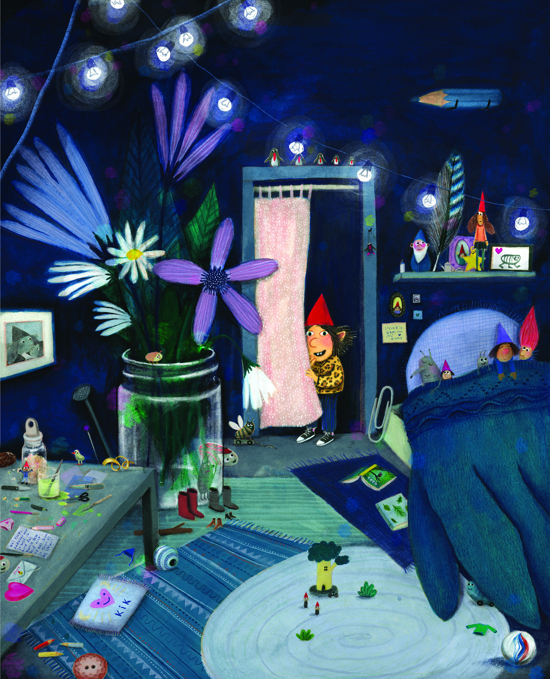 Wat valt er veel te zien in de stad! Auto’s, pleinen, stoplichten, grote gebouwen, maar als je nog wat beter kijkt: wat zie je dan? Is dat nou een deurtje naar een kabouterhuis? Zit daar soms een muizencafé onder dat putdeksel?